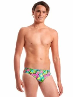 Living on Island Time? Jamaican Me Crazy Man! Indulge in a little slice of paradise in this energized tropical print. Neon silhouettes of palm trees over a crazy cool abstract border will give you that extra jolt for training or swing you into holiday mode.