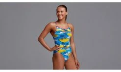Funkita’s most popular one piece with fabric panels across the back for a secure fit and comfy single bind shoulder straps. ECO C-INFINITY is 100% chlorine resistant and gives new life to discarded plastic bottles.