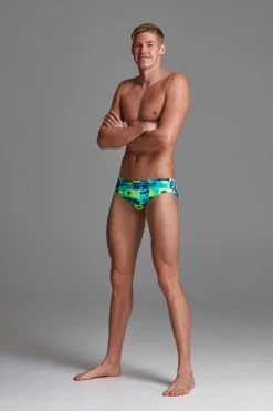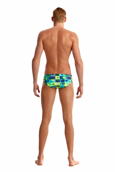 A classic cut brief with 8cm sides, flat elastic waistband and flatlock stitch finish. Drawcord, front lining and Funky Trunks embroidery come standard.