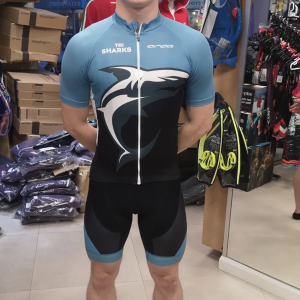 Made Exclusively for us. The Orca TriSharks Custom Short Sleeve Cycle Jersey.