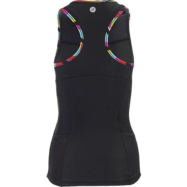 Zoot’s most popular tank for enhanced sun protection, the women’s Performance Tri Tank provides essential support, protection and comfort without sacrificing style. Full front and back coverage, as well as a dropped back hem make this a great tank for the women looking for more coverage from the sun. Premium Performance Endura fabric will keep you dry, comfortable and supported. Side stash pockets for nutrition storage and a built-in bra for added support make this a functional piece for your training and racing season.